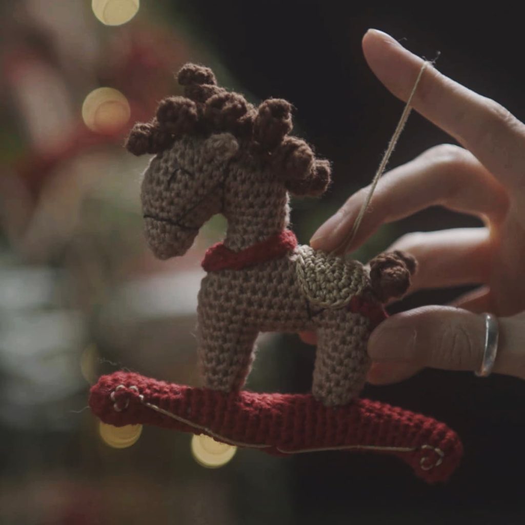 Set de dos Caballitos para adornar el árbol. Hechos manos con hilos de 100% Algodón. Cada uno mide 9.5 cm de alto.